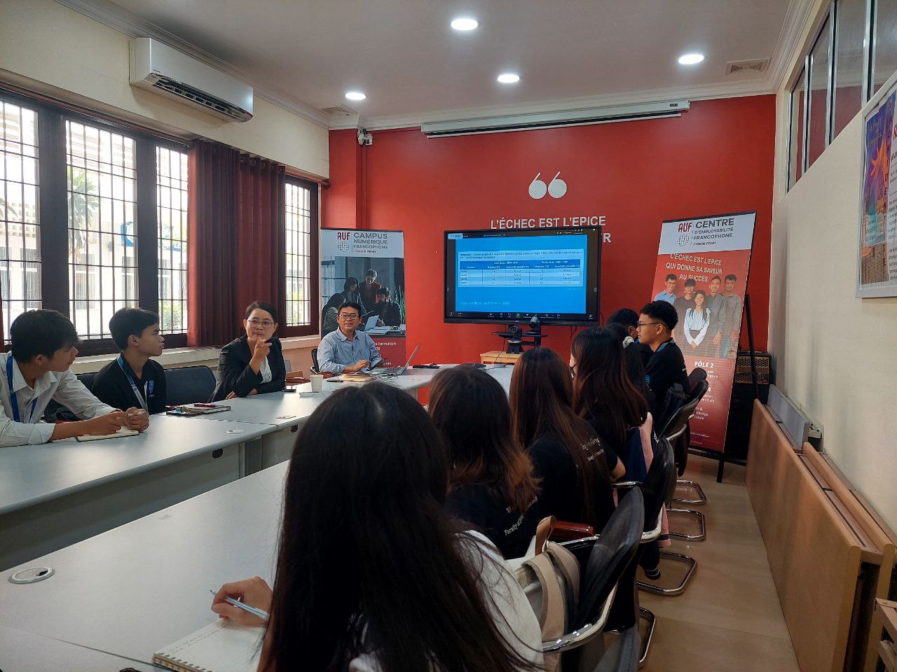 Le 22 février, l’AUF - Asie-Pacifique a organisé une conférence intitulée « L’océan au cœur du climat : comprendre, protéger, innover » au Campus numérique francophone (CNF) de Hanoï. Cet événement a réuni près de 70 étudiants sur place au CNF de Hanoï et 30 autres au CNF/CEF de Phnom Penh, offrant une opportunité précieuse d’échanger et d’approfondir leurs connaissances sur l’impact des océans dans la régulation du climat. Cette conférence été animée par Madame Emmanuelle Pinault, experte en gouvernance climatique et politiques environnementales.