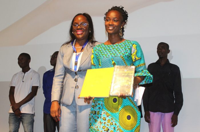 Amoin Gervaise KOUAME, lauréate du concours (à droite) Jocelyne Bosson, Responsable de l’Antenne de l’AUF à Abidjan (à gauche)