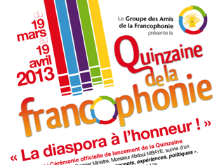 Dakar, le 14 mars 2013 - Le Groupe des Amis de la Francophonie organise la Quinzaine de la Francophonie, du 19 mars au 19 avril 2013, à Dakar et en région, sur le thème « Le rôle des diasporas...
