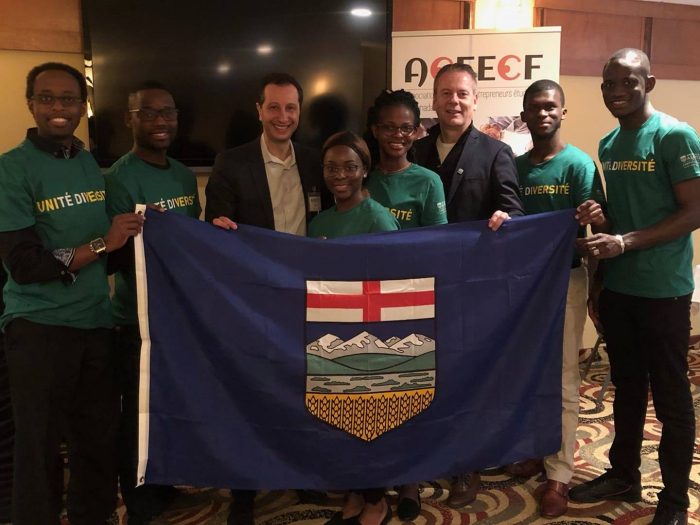 Équipe du Club d’entrepreneurs étudiants de l’Université de l’Alberta avec Pierre Touzel, directeur de l’ACEE du Québecc et Hazouz Bezaz, Directeur de l’ACEECF.