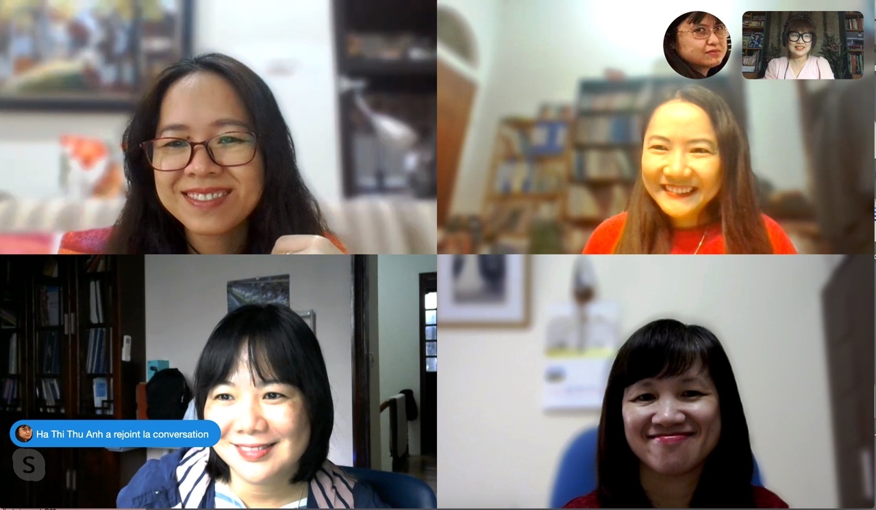 Du 13 au 15 mars 2020, Mme Nguyen Thi Cuc Phuong, Vice-rectrice de l’Université de Hanoï (Vietnam), membre de la Commission régionale des Experts (CRE) de l’AUF a suscité une rencontre à distance avec l’équipe pédagogique de la Section de français de l’Institut Polytechnique de Hanoï (IPH) afin de réfléchir à de nouveaux contenus pour des cours francophones hybrides (mêlant le présentiel et l’enseignement à distance). Dans un contexte compliqué par la pandémie COVID-19, le sujet était particulièrement d’actualité.