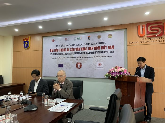 Viendront rythmer l’avancée des travaux des conférences et des tables rondes, dont le colloque du 24 novembre 2020. Après 1 an de la journée de lancement de Vietnamica, ce colloque a donné aux partenaires l’occasion de faire un bilan sur l’état d’avancement du projet et d’échanger plus profonds sur les valeurs de stèles de donation, un type épigraphique original et unique en Asie et qui s’occupe une grande quantité dans le trésor des inscriptions gravées du Vietnam. En même temps, le colloque fut également l’occasion pour les étudiants du projet de présenter leurs sujets et leurs plans de recherche afin de recevoir les commentaires des experts dans ce domaine.