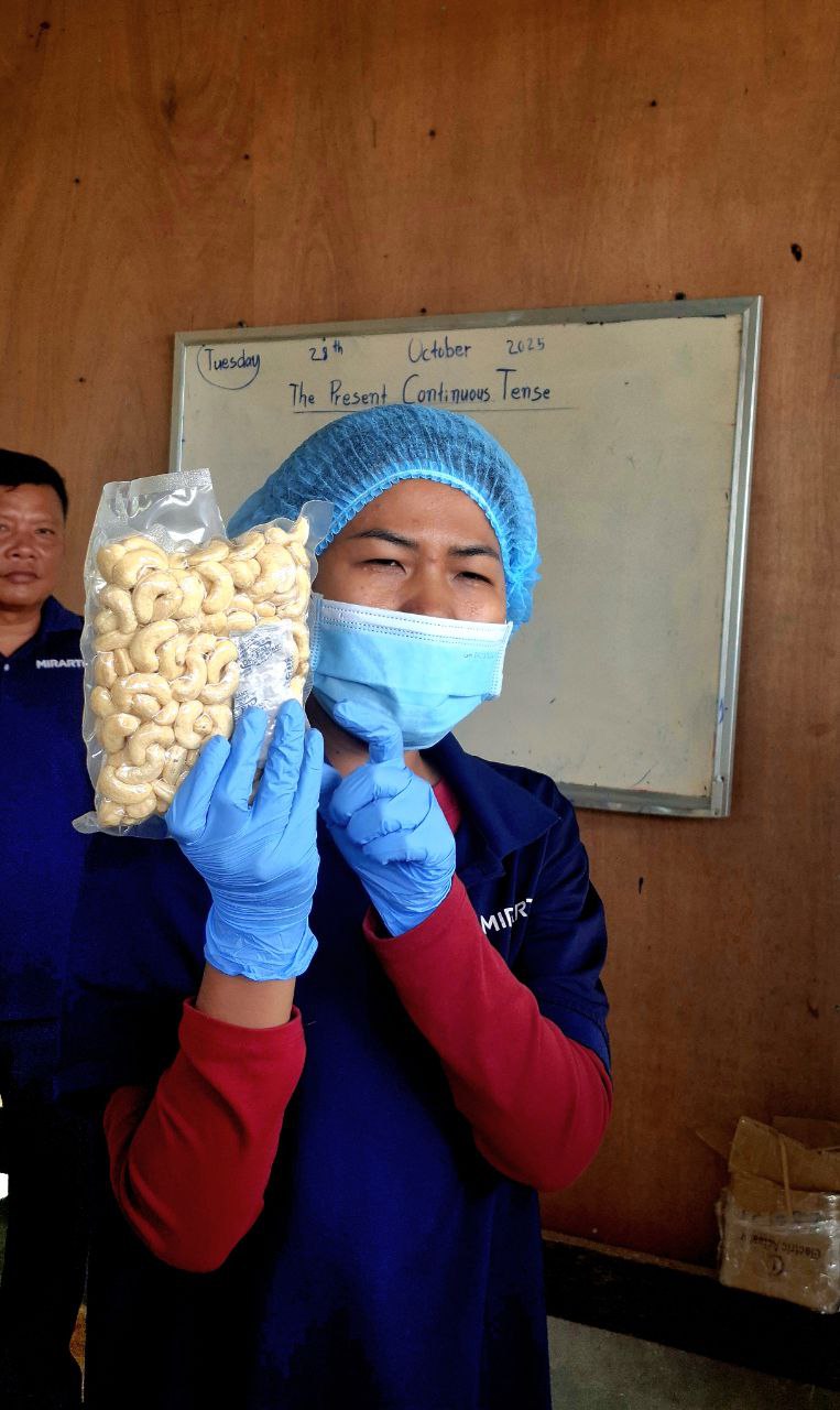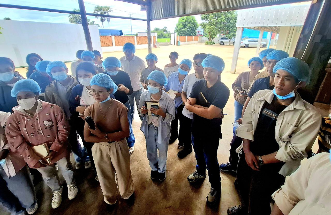 La province de Kampong Thom est réputée pour la plantation et la production de noix de cajou. C’est ici que les étudiants ont visité deux usines de transformation de noix de cajou, l’une appartenant à une société japonaise et l’autre étant locale. Situées dans le même village, au district de Kampong Svay, ces deux usines emploient plus d’une centaine de femmes et de jeunes du village, tout en collectant des milliers de tonnes de noix de cajou auprès de différentes communautés d’agriculteurs du district.