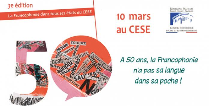 Le CESE organisera la 3e édition de la « La Francophonie dans tous ses états au CESE » le 10 mars 2020, à Pairs (France), sous le Haut patronage de l’Organisation Internationale de la Francophonie (OIF) et le patronage de la Commission nationale française pour l'UNESCO. Le CESE proposeRA plusieurs temps forts pour lancer la célébration des 50 ans de la Francophonie. L'AUF est partenaire de l'évènement.